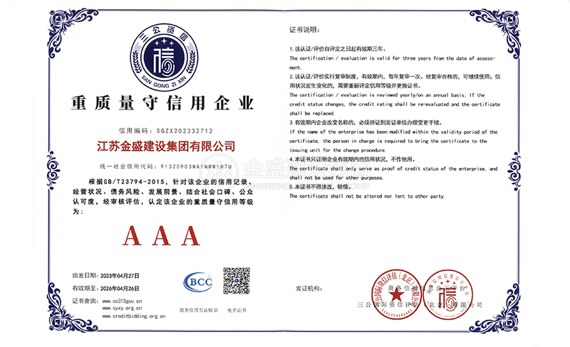 • 2007年江蘇省質量信得過安全穩定施工企業