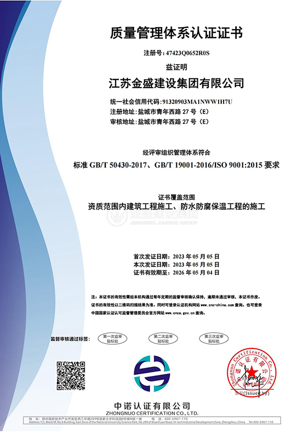 • 施工總承包貳級新防水防腐保溫工程專業承包一級